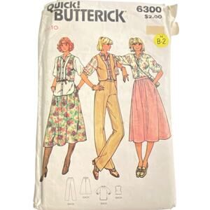 Butterick 6300 Top Vest Skirt Pant Pattern 1970s Cut Complete