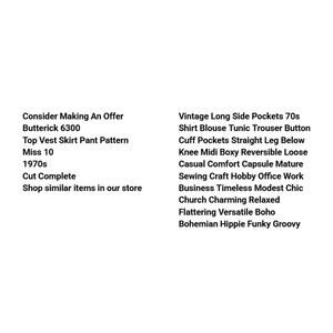 Butterick 6300 Pattern Top Vest Skirt Pant Miss 10 Vintage Long Side Pockets 70s