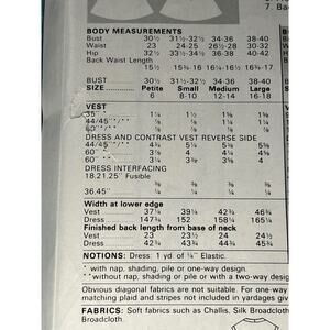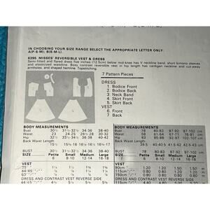Butterick 6395 pattern dress fit and flare V neck vest size S M L