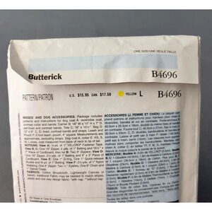 Butterick #B4696 Sewing Pattern Misses & Dog Accessories UNCUT