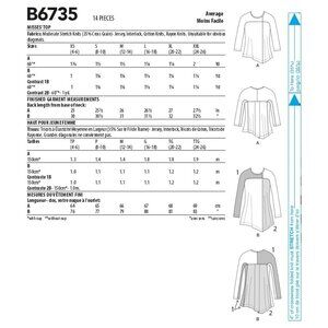 This sewing pattern offers a stylish and versatile top with an asymmetrical hem and sleeve options, suitable for moderate stretch knits.