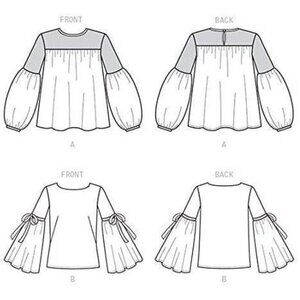 • Includes two design variations: lace yoke with bishop sleeves or tie-sleeve detail