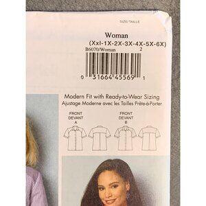 Butterick Misses Top Shirt Sewing Pattern Sz XX1-6X B6070 - Uncut