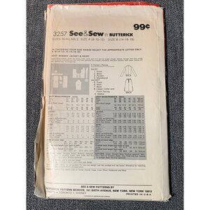 Butterick See & Sew 3257 Misses' Coat & Skirt Pattern Size B (14-16-18) - uncut