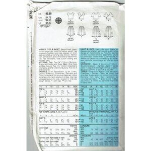 Butterick Sewing Pattern 3278 Top Skirt Misses Size 6-10