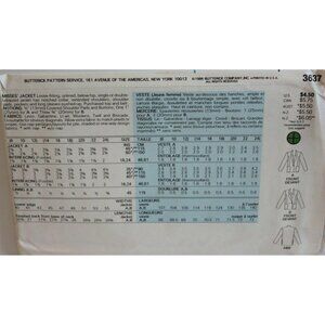 Butterick Sewing Pattern 3637 Misses Jacket Blazer
