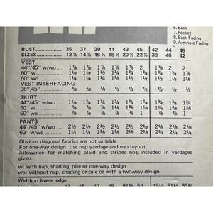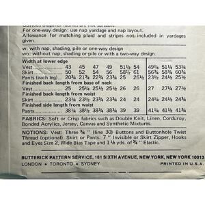 Cut to size has all pieces and instructions for vest and pants only no skirt pattern is included.