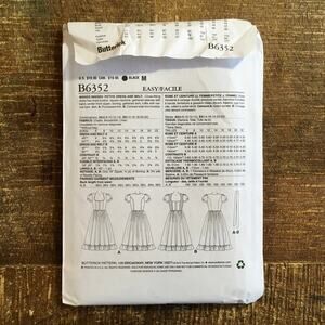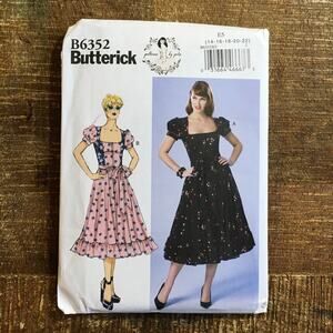Butterick Sewing Pattern B6352 Retro Cottagecore Square Neck Dress 14-22 UNCUT