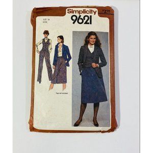 Simplicity 9621 Sz 14 Miss Misses Pants Skirt Unlined Jacket and Lined Vest 1980 Cut but complete