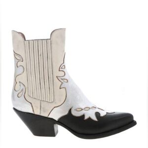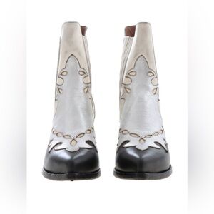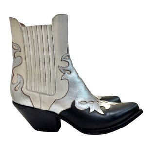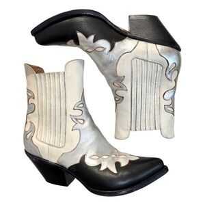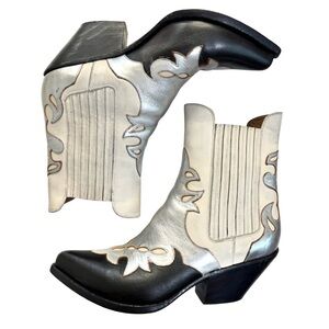 Buttero Women’s 9.5 Texan Ankle Boots Western Panels Distressed Black White