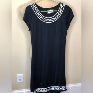 This dress is made up of butter soft material, and feels great on! This dress is fitted, but has good give for extra comfort! It is a very versatile dress that can be dressed up for work or down for date night.