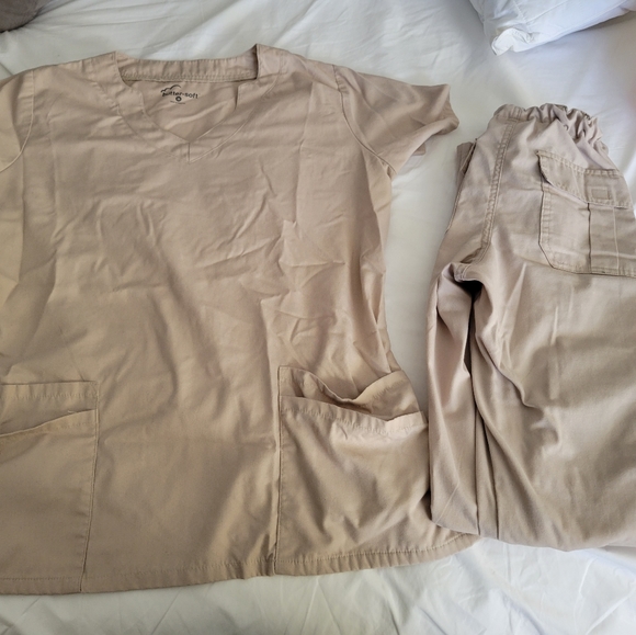 Buttersoft scrub set. Barely worn. Size medium in top and XS in bottom. Khaki color.