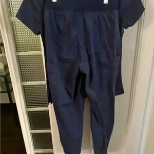 Butter-soft stretch scrub pants & top set. Navy size XS