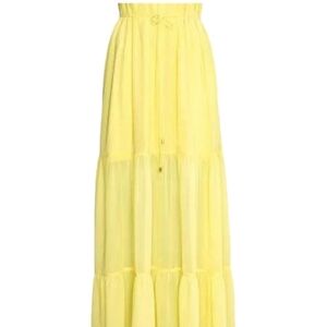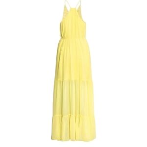 H & M yellow chiffon flowy t back belted maxi sun dress sz 2
