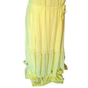Buttery yellow chiffon flowy t back fairycore belted maxi sun dress sz 2