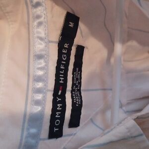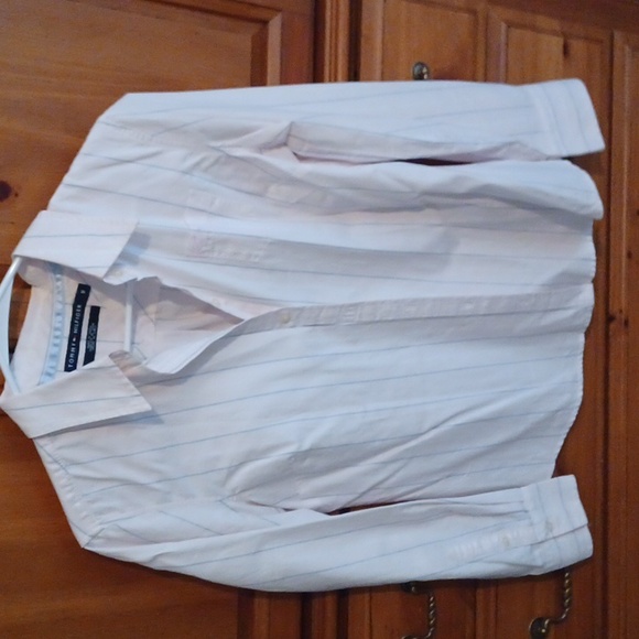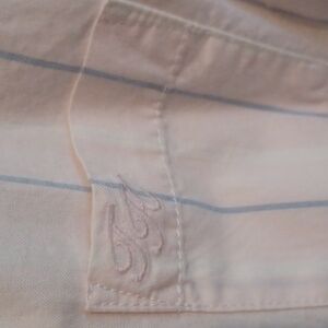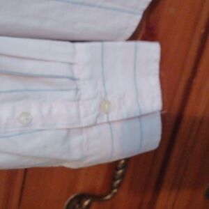 Light pink with a blue and white stripe button up