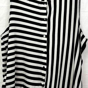 Button Back Striped Rayon Tank Women L Black White Cooperative