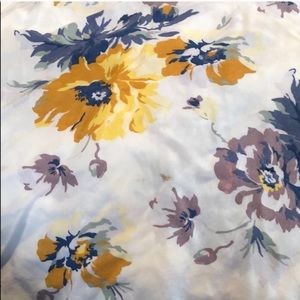 Soft and lightweight fabric with a button back detail, crewneck and straight hem. Small stain on front of blouse but it blends in with the print. Price reflects wear. No trades.