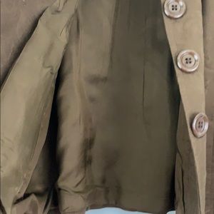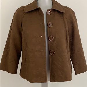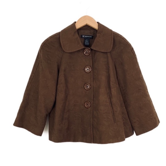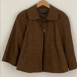 Brown 4 button collared cape-style large opening on sleeves.