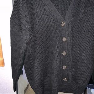 v neck black button cardigan