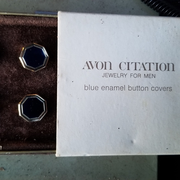Avon brand Blue Button covers. Never used. No scratches. Still has the original box. Smoke free home.