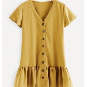 Button Detail Ruffle Hem Dress