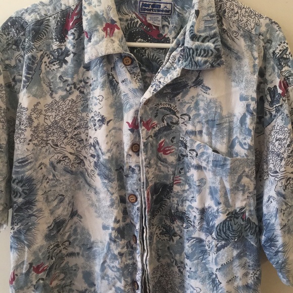 Blue and white button down, some tiger print