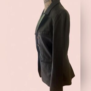 Button Down Black Genuine Leather Blazer Jacket Womens Size XS