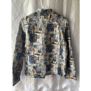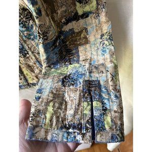 Button Down Blue Tan Black Green Jacket Quilted Multi Reversible w/ Pockets.