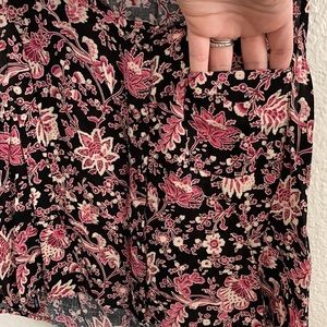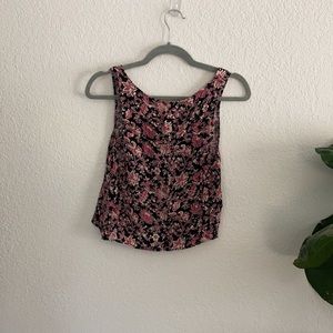 Pink floral patterned tank. There’s a little pocket and some cute little fabric wrapped buttons.