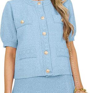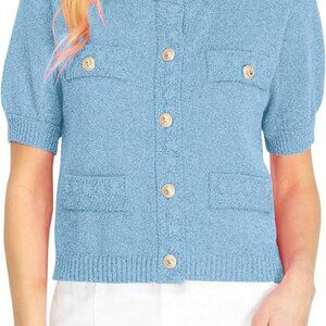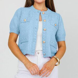 Button Down Cropped Cardigan Sweaters Crewneck Short Sleeve Knit Open Front