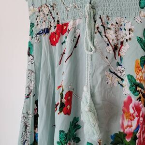 - light blue with vivid Eastern red/orange/black/white/green floral print