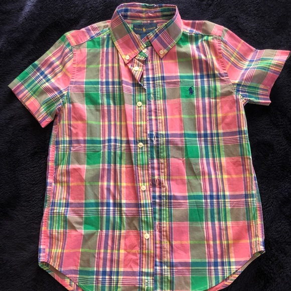 Pink Plaid Button Down Polo