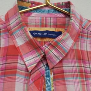 Rare George Roth Los Angeles Long Sleeve Button Down Plaid Shirt . Amazing details on cuffs, seams, button placket. Very light soft high quality cotton. Only letting go because I never wear this color.