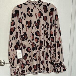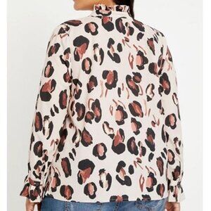 Printed Button Down Shirt with Ruffle Neck