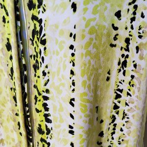 This lime green, black and white animal print blouse flows comfortably with every move.