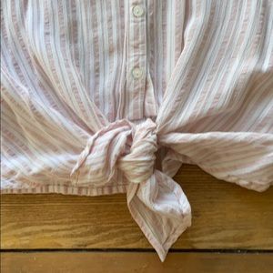 Cute pink and white vertical striped tie waist tank. Light weight, 100% rayon, perfect for summer size small