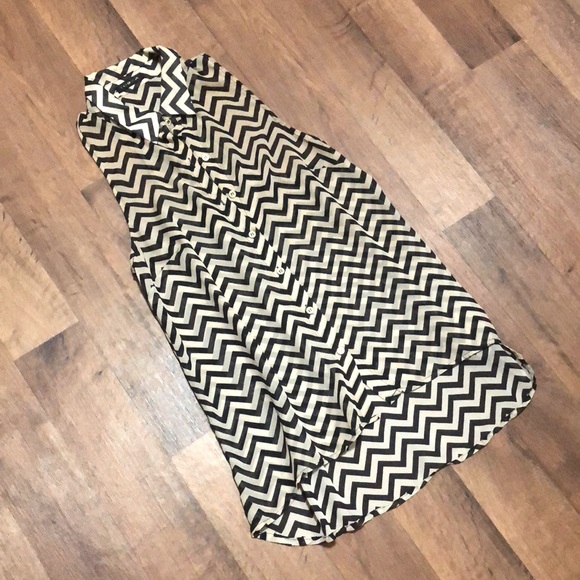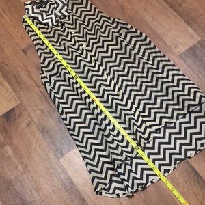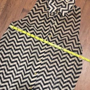 Button down tank top is tan color with black zigzag pattern with gold button accents. Please see pics for details 😊 (white skirt also available for purchase—see separate post!)