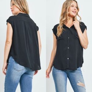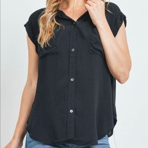 Black button down top. Cuffed sleeves. Pockets
