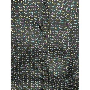 Button Down blouse abstract pattern black blue purple yellow kitten bow
