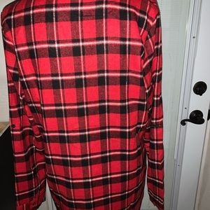 Never worn! Callie Button Flannel Super cute flannel, long enough to be wore with leggings Color: Red/Black/white Size: XL