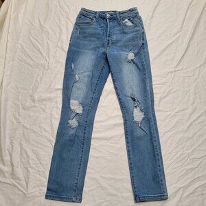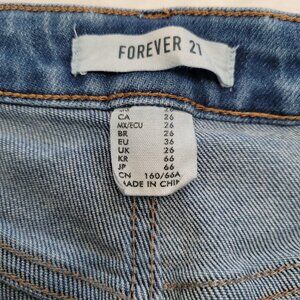 Button Fly Distressed Jeans Medium Wash Size 26 Stretchy Forever 21