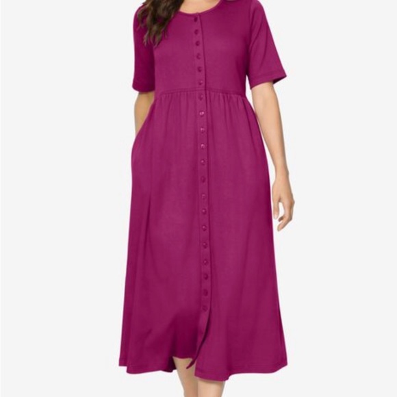 Button Front Essential Dress In Raspberry