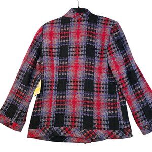 Multiples Button Front Blazer Medium Red Black Purple Jacquard Abstract Textured