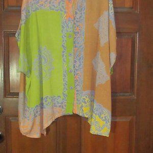 Subtle earthy colors. Rayon. Dry clean.