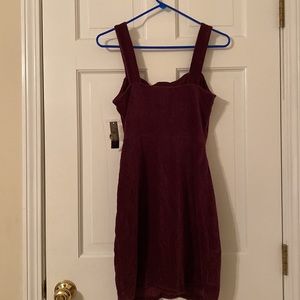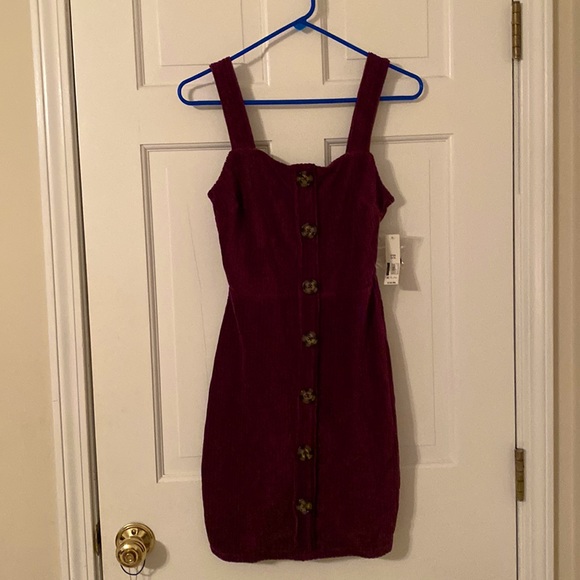 Maroon polyester dress with brown tortoiseshell buttons; comes with 1 extra button; never been worn