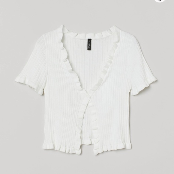 White ribbed ruffle crop top, button front, very good condition