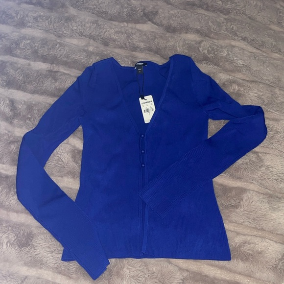Express blue button front long sleeve top. Brand new with tags, size small!