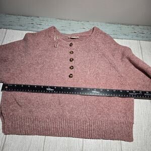 Button Henley Sweater Dusty Pink Poly Cotton Blend V-Neck SMALL Schoolgirl Crop