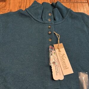 Teal “legion blue” ribbed long sleeve 10 button mock. Made of recycled materials. NWT